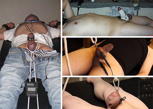 Han tog så en læderpose med pigge inden i, som han spændte rundt om min pik og nosser med snore og læderremme. Da han strammede til, så piggene borede sig ind i min pik og nosser, sortnede det næsten for øjnene af mig.