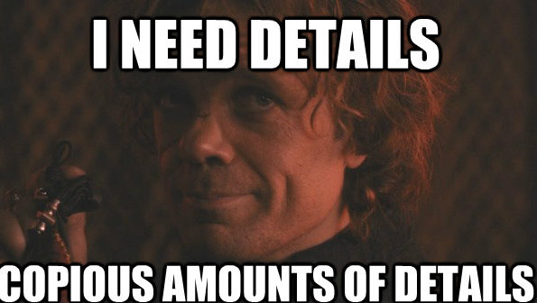 Hvad jeg prøver at sige med det meme, som måske kommer til at virke er, at jeg har brug for mange flere detaljer… 😏