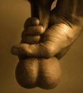 Spermcontaineren har ingen tøj på og er fuldstændig glat over det hele som mig. Han har en kæmpestor ballstretcher